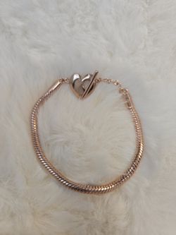 Pandora Moments Heart T-Bar Snake Chain Bracelet in 14k rose gold-plated metal. $75Austin, TX