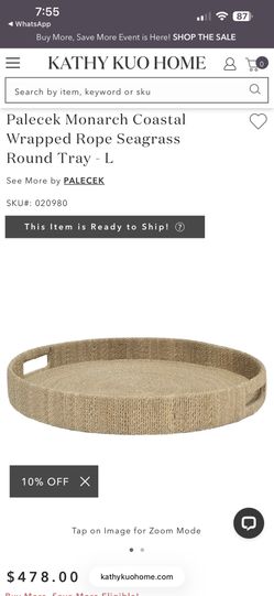 Palecek Monarch Coastal Wrapped Rope Seagrass Round Tray - L$350Boca Raton, FL