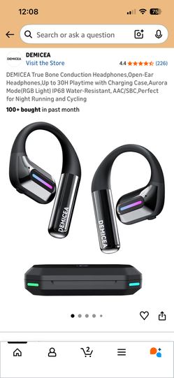 DEMICEA True Bone Conduction Headphones,Open-Ear Headphones,Up to 30H Playtime with Charging Case,Aurora Mode(RGB Light) IP68 Water-Resistant, AAC/SBC$60San Bernardino, CA
