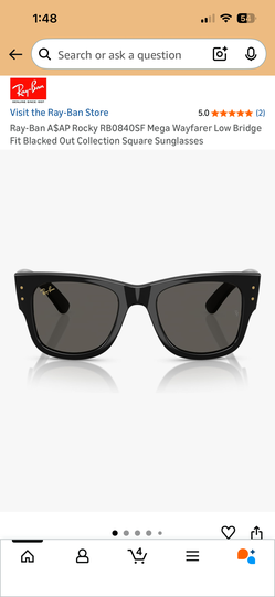 Ray-Ban A$AP Rocky RB0840SF Mega Wayfarer Low Bridge Fit Blacked Out Collection Square Sunglasses$260San Bernardino, CA