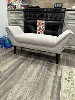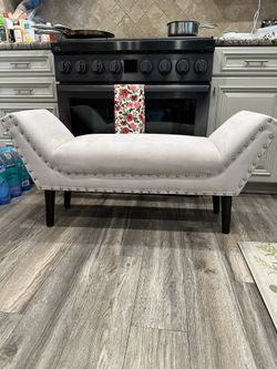 Beautiful Light Gray Suede Bench With Nail Button Trim And Wooden Legs$120Long Beach, CA