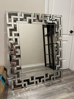 Gorgeous Large HEAVY Elegant Beveled Geometric Decorative Rectangle Wall Framed Mirror - Size 47 1/2 X 37 1/2 - Read Description$140Long Beach, CA