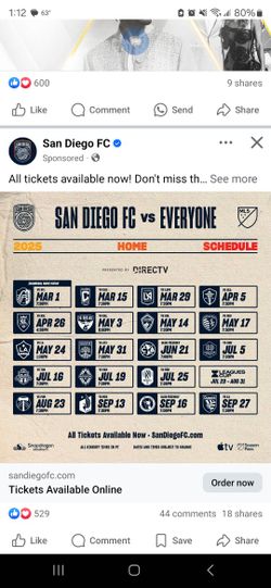 LA Vs San Diego Fc Tickets $65Spring Valley, CA