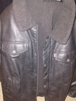 Men brand name Levi very nice 3xl black leather bomber jacket $70Redford Charter Township, MI
