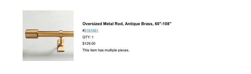 Brand New West Elm Oversized Metal Curtain Rod, Antique Brass, 60"-108"$50Orange, CA