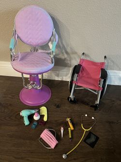 18” Doll Hair Styling Chair, Wheelchair & Accessories (no doll)$13Riverside, CA