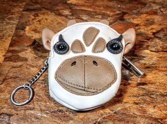 Giraffe Coin Purse • Zipper Top Secure • Key Chain Ring Attached • Leather Like Material • Measures: 5"-Long X 5"-High • Very Cute !