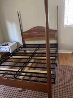 Antique Sturdy wooden bed frame with metal slats, suitable for a comfortable setup. $200 Located Mount Dora Fla 32757$200Mount Dora, FL