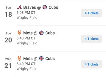 BLEACHERS!! CUBS V. Braves/Mets/Brewers$1Chicago, IL