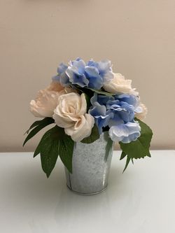 Blue and Peach Bouquet in Metal Vase$5Vernon Hills, IL
