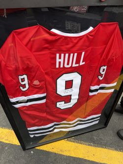 Chicago Blackhawks Bobby Hull signed jersey glass frame$300Deerfield, IL