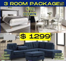 NEW 3 ROOM PACKAGE DEAL- BED MATTRESS DINING ROOM SECTIONAL SOFA AND MORE $54Fort Worth, TX