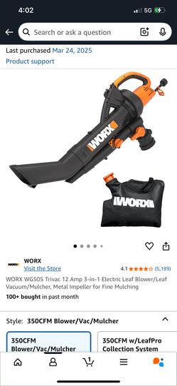 WORX 12amp 3 In 1 Electric Lead Blower/ Vacuum/ Mulcher$65Chandler, AZ