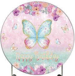 Renaiss Pink Blue Butterfly Round Backdrop Cover 6ft, Colorful Flowers Flying Butterflies Polyester Round Photography Background for Girls Birthday D$14San Antonio, TX