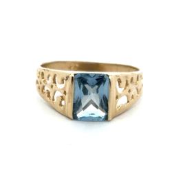 Men’s Or Woman’s 14k Yellow Gold Emerald Cut Blue Stone Filigree Detail Ring Size 6.5 GP3118608$370Phoenix, AZ