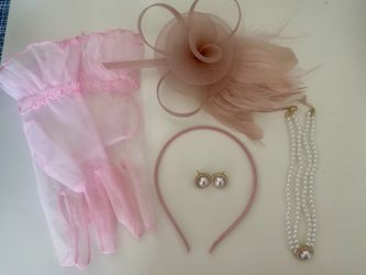 Tea Party Accessories 5 Pcs Fascinator, Head Band, Gloves, Earrings And Necklace$5Miramar, FL