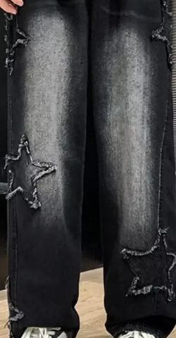 Mens Y2k Men's denim straight-leg wide-leg pants with star patterns - New street fashion from Europe and America, loose, comfortable $29Brooklyn, NY