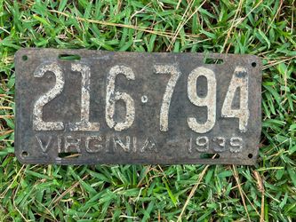 1939 VA Plate$40Norfolk, VA