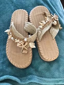 Beach Slippers/Flip-flops new adorned with gorgeous shells and gold Chain size 8 1/2/40 NWT$20Spring Hill, FL