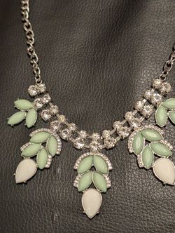 Vintage Clear Rhinestone And Green Leaf Pattern Stones. Beautiful Statement Necklace$20Spring Hill, FL