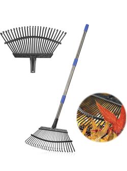Garden Rake for Leaves, Leaf Rakes Heavy Duty for Yard,Lawn,Shrub,Grass,Mulch, 18" Metal Head,6ft Adjustable Long Handle,$20Downey, CA
