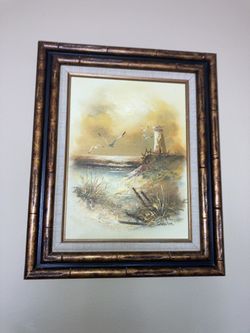 Oil Painting Wall Art $10 Landscape Seascape Yellow Lighthouse Seagulls Birds Seashore$10Scottsdale, AZ