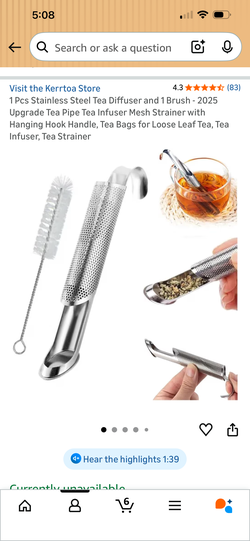 Stainless steel tea diffuser with cleaning brush and 2 ounces slippery Elm bark tea$12Las Vegas, NV