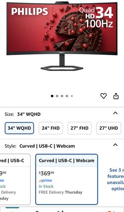 Phillips 34in Curved Monitor With Webcam$80Columbus, OH