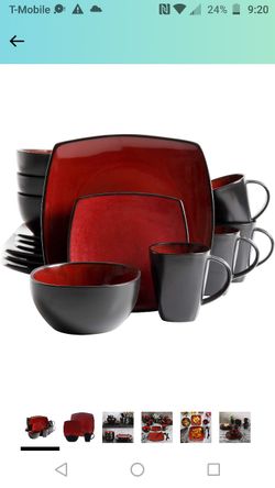 Gibson Soho Lounge 16-Piece Square Reactive Glaze Dinnerware Set, Red