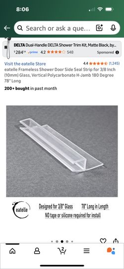 eatelle Frameless Shower Door Side Seal Strip for 3/8 Inch (10mm) Glass, Vertical Polycarbonate H-Jamb 180 Degree 78" Long $5Houston, TX