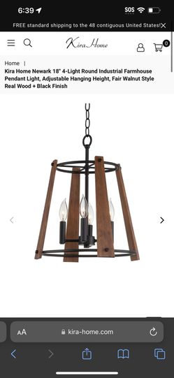 Kira Home Newark 18" 4-Light Round Industrial Farmhouse Pendant Light, Adjustable Hanging Height, Fair Walnut Style Real Wood + Black Finish$50Moreno Valley, CA