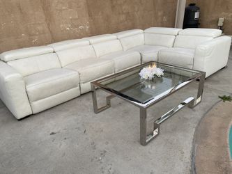 KUKA L Shape Sectional WHITE LEATHER with Adjustable Headrest & 2 Corner Electric Recliner $500Los Angeles, CA