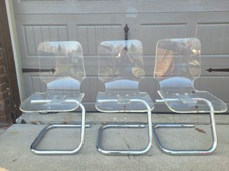 Set of 3 Vintage 1970s Paper Clip Lucite & Chrome Dining Chairs by Luigi Bardini$900Bloomfield Township, MI