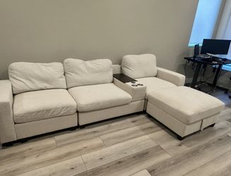 Comfortable Beige Couch with Ottoman and Storage 118” width$400Los Angeles, CA
