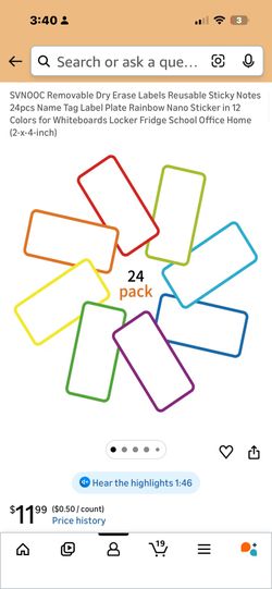 SVNOOC Removable Dry Erase Labels Reusable Sticky Notes 24pcs Name Tag Label Plate Rainbow Nano Sticker in 12 Colors for Whiteboards Locker Fridge Sch$13Queens, NY