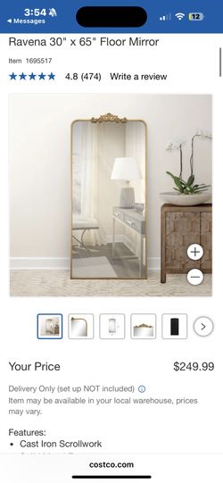 Ravena 30" x 65" Floor Mirror Costco$170Norwalk, CA