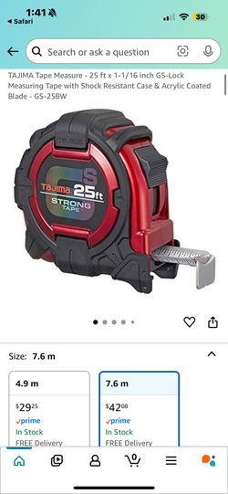 TAJIMA Tape Measure - 25 ft x 1-1/16 inch GS-Lock Measuring Tape with Shock Resistant Case & Acrylic$25Norwalk, CA