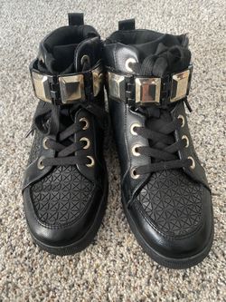 Aldo Black Leather / Lace-up Gold Buckle Strap Hightop Shoes$40Hanover Park, IL