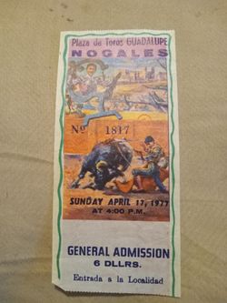 Vntg Mexican Bull Fight Ticket$20Oklahoma City, OK