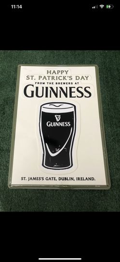 Guinness Sign Happy St Patrick's Day Draught Stout St James Gate, 14”x20”$40Fairfield, CA