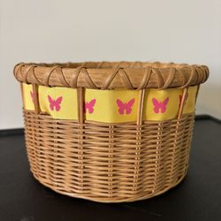 Woven Basket With Yellow Ribbon Featuring Pink Butterfly Decorations $15Long Beach, CA