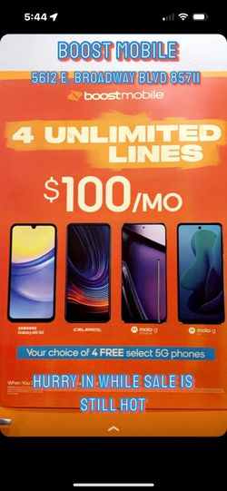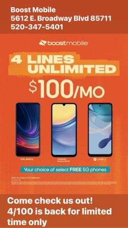 Boost Mobile 5612 e. Broadway Blvd 85711 3 Lines For $90 A Month Unlimited Everything Is Back $90Tucson, AZ