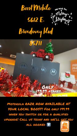 Boost Mobile 5612 e. Broadway Blvd 85711 MOTO RAZR ONLY 199.99 Switch/upgrade/new#$199Tucson, AZ