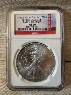 Sold2014 (S) Silver Eagle,Early Releases San Francisco Mint 1oz Red Bridge Label ms69$105Phoenix, AZ