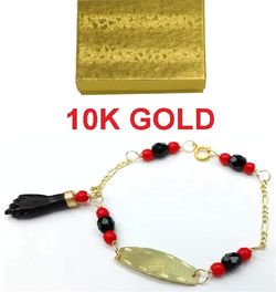 Real 10K Gold Azabache Baby Bracelet Evil Eye Pulsera Azabache Mal De Ojo$89Queens, NY
