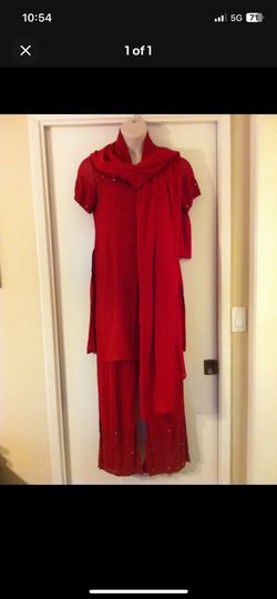 Red Kurti, Pants And Scarf Beaded Women’s Outfit From India Size 40 Medium $40Anaheim, CA