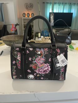 Brand New Ed Hardy, Black Floral Skull Satchel Purse Handbag Msrp $99$65Anaheim, CA