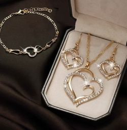 Sparkling heart-shaped necklace and earrings set.$20Highland, CA