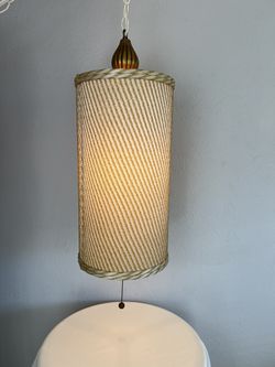 Vintage 1960s Mid Century Hanging Lamp with Woven Fabric Gold Striped Cylinder Shade$180Huntington Beach, CA