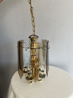 Vintage 1970s Brass and Two-Toned Beveled Glass Panel Chandelier Pendant Light$200Huntington Beach, CA
